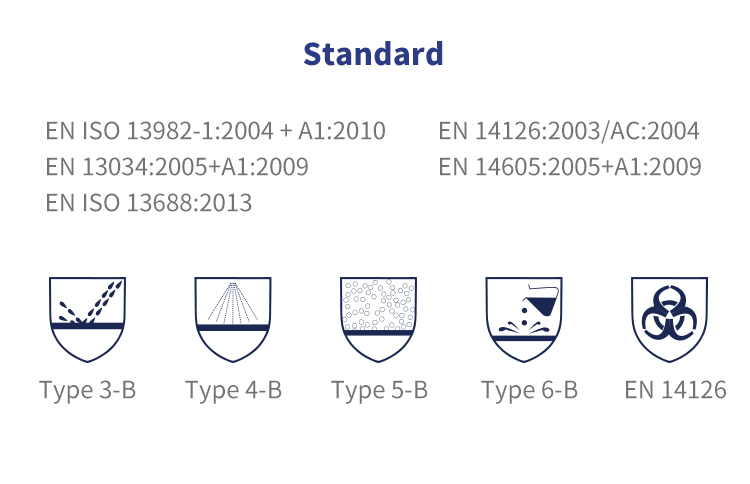 | Standard: | EN ISO 13982, EN ISO 13688, EN 13034, EN 14126, EN 14605 |